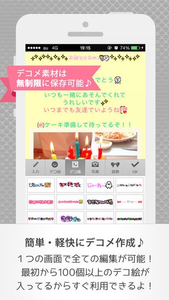 デコメーラー- デコメ・着信音・フォルダ管理・自動振り分けが可能な高機能メーラー(以下デコメーラー)は、メールをデコレーションしたり、デコログ、アメブロなどブログメディアにも投稿できるメールアプリです。文章だけで伝えるとそっけないブログやメールもデコ画像やデコ絵文字を入れることでポップにかわいく変えられます。
